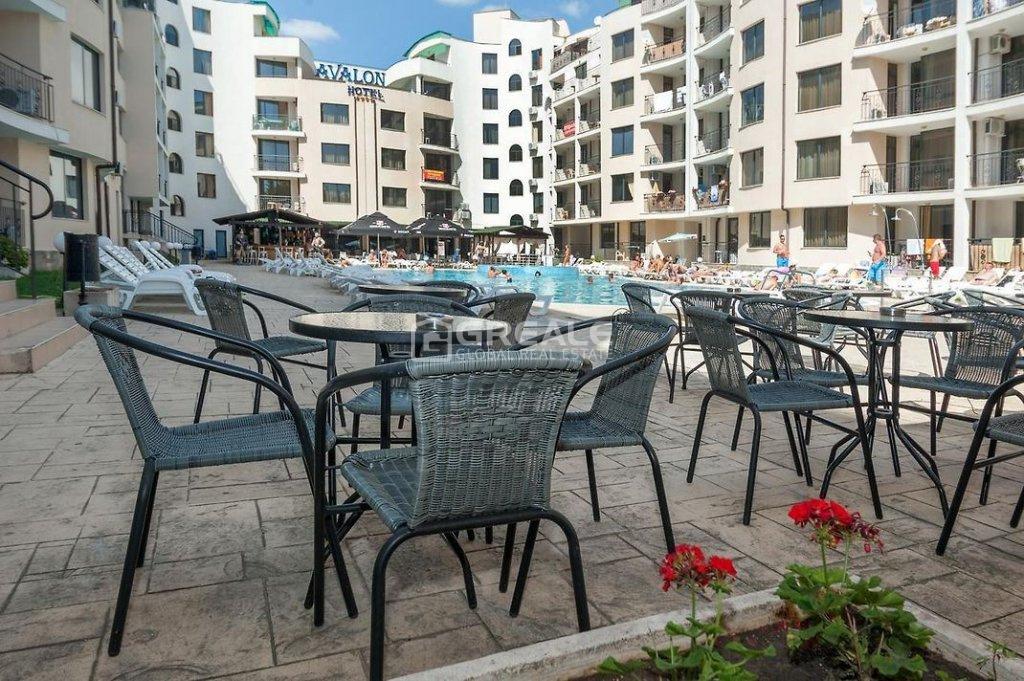 Az Avalon Komplexum a Napospart szívében helyezkedik el, mindössze 450 méterre a tengertől és 10 perc sétára a főutcától. A környéken rengeteg üzlet, étterem és szórakozási lehetőség található. A komplexumban a medence mellett díjmentesen használható napozóágyakat és napernyőket helyeztek el, mellette üzemel egy teraszos étterem, továbbá recepció, liftek, parkoló és 24 órás biztonsági szolgálat garantálja a nyugodt pihenést.